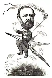 He made his name as a novelist in 1856, when he published It Is Never Too Late to Mend, a novel written to reform abuses in prison discipline and the treatment of criminals. The truth of some details was challenged, and Reade defended himself vigorously. Five more novels followed in quick succession: The Course of True Love Never Did Run Smooth (1857), White Lies (1857), Jack of all Trades (1858), The Autobiography of a Thief (1858), and Love Me Little, Love Me Long (1859).[4] White Lies started as a translation of Auguste Maquet's play Le Château de Grantier. After managers declined the manuscript, Reade adapted the story, weaving it into a novel which was serialised in The London Journal and published in three volumes the same year. He produced an adaptation of this on stage as The Double Marriage in 1867.[5]