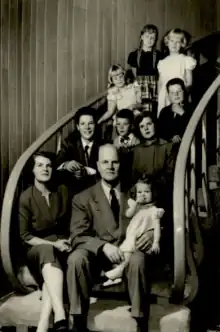 Redd was briefly married to Ethel Moore, who he had met while on business in Moab, Utah, from 1921 until their divorce in 1925.[50] The reason for divorce was cited as "extreme cruelty" in a California newspaper, where Moore was living at the time of divorce.[51] In 1931, Redd married Annaley Naegle, who had been born into a polygamist family in Morelos, Mexico.[52] Naegle's family had moved to Utah following the Mexican Revolution in 1912, and due to anti-polygamy laws the family had not been permitted to live together.[53] Naegle lived with her mother and siblings in Castle Dale, Utah, and Ammon, Idaho before attending Brigham Young University.[54] Following her graduation, Naegle accepted a teaching position in La Sal, and at the same time worked at the La Sal Livestock and Store Company as Redd's secretary.[55][56] Naegle and Redd were married on August 29, 1931, in Farmington, Utah, and were later sealed in the Salt Lake Temple in 1951.[12][57] The couple had nine children, eight of whom lived to adulthood.[58][59]