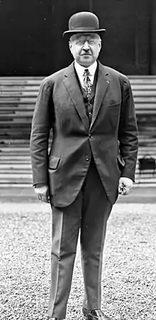 Reibel was reelected on 11 May 1924, 29 April 1928 and 8 May 1932, but was not asked to join any of the governments in this period. He developed some resentment against Poincaré for this reason.[1] In 1935 French intelligence considered that the Germans would have offensive capabilities by the next year. During a debate in the chamber Reibel said it would by "wise policy" to advance "the necessary sums to Belgium" so she could complete her defenses.[10] He said that in their present incomplete state the Belgian fortifications were "really non-fortifications" and called on the Minister of War, Louis Maurin, to support financial aid to Belgium. Maurin declined to answer.[11] Reibel ran for election to the Senate in 1935, and was elected in the second round on 23 October 1935 on the National Union list.[1] After the Munich Agreement was signed in September 1938 Pierre-Étienne Flandin sent a telegram of congratulations to Adolf Hitler. Within an hour Paul Reynaud resigned from the Alliance Démocratique. Reibel resigned from the vice-presidency of the party, and violently attacked Flandin at the party congress.[12]