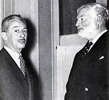 ![]() Charles Ritz (left) with Ernest Hemingway on receiving a prize from the Fario Club | |