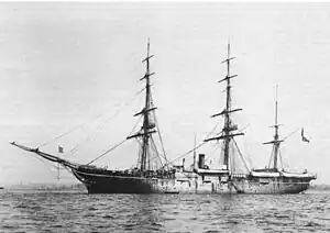 Soon after arrival in Europe, the Russo-Turkish War broke out, and Schroeter and his fellow shipmates were sent to Salonika, on the Greek coast, and thence to Smyrna.[18] The duty was tedious and boring and discipline was maintained through a strict training regime. Close order drills, abandon ship drills, fire drills, repel boarder drills and cleaning and repairs occupied most of Schroeter's time over the next ten months. "Spit and polish" was often the mantra aboard such US Navy ships.[19]