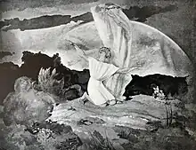 Charles Henry Sims RA RWS (28 January 1873, Islington–13 April 1928, St. Boswells) was a British figurative painter known for his portraits and landscapes. He initially became renowned as a leading Edwardian painter,[1] but following the death of his son in World War I, his work became increasingly idiosyncratic, surreal and controversial. In 1920, he was appointed Keeper, or head, of the Royal Academy Schools, a post he was eventually forced to resign in 1926. At the same time, he became estranged from his wife and children. Sims' final paintings, the Spiritual Ideas, were to some viewers his "most beautiful works,"[2] but to others highly disturbing. He died by suicide in 1928.
