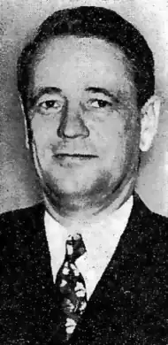 He served in the US Army during World War II, rising to the rank of brigadier general. With his financial background and experience as a lawyer, along with his ability to speak French, he was assigned to Allied Force Headquarters in Algiers as advisor on economic and supply issues.[5] In 1943, he became Chief of Staff of Allied Military Government and Deputy Chief of Civil Affairs for Sicily and Italy.[5] In 1944, he was named Assistant Chief of Staff for Military Government for the whole Mediterranean theater.[5] Wallace Deuel, a reporter for the St. Louis Post-Dispatch, remarked that he had to deal with "some of the most flamboyantly temperamental men of a dozen nationalities the world has ever seen; General George Patton, Field Marshall Bernard Montgomery and General Charles de Gaulle, just to name a few examples, and he got excellent results".[5] He earned the Purple Heart, Distinguished Service Medal, Legion of Honor, Croix de Guerre and Order of the British Empire.[1][6]