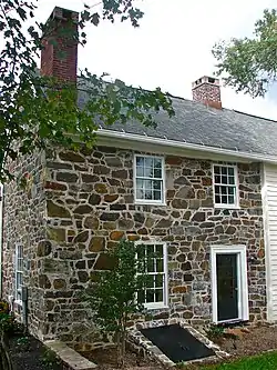 Charles Springer Tavern, also known as the Oak Hill Inn, Four Mile Inn, and Sign of the Three Tons, is a historic inn and tavern located near Wilmington, New Castle County, Delaware, USA. The building is a two-story, log and stone building that evolved in four major construction phases during the period from 1750 to 1850. The oldest section is a two-story, two-bay, gable-roofed log section. A stone, two-story, two-bay, gable-roofed section was added about 1780; the roof level, window and door openings and floor levels were subsequently raised on the original log section; and a stone, 1+1⁄2-story lean-to was added on the rear wall of the log section. It has been a residence since the early 20th century. It is in a vernacular Federal style. Also on the property are the contributing ruins of a stone barn built in 1852, the ruins of a stone springhouse, and a stone mileage marker identifying the location as being four miles from the City of Wilmington.[2]