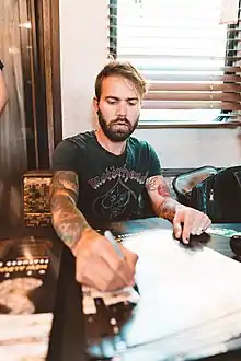 In 2011, Trippy joined We the Kings as the bass player replacing Drew Thomsen who left the group earlier that year. He recorded his first studio album with the band, Somewhere Somehow, in 2013.[25] The album debuted at no. 44 on the Billboard 200 and at no. 6 on the Top Rock Albums charts.[4] In 2014 and 2015, Trippy recorded Stripped and Strange Love respectively, with We the Kings. Self Titled Nostalgia and Six were released in 2017 and 2018 respectively. Trippy has performed across the United States on the Vans Warped Tour as the bass player for We the Kings.[26] As a member of the band, We the Kings, Trippy has received Platinum record by Australian Recording Industry Association. In 2016, he received Platinum certification from RIAA for "Check Yes Juliet". In 2017 and 2018, Trippy received Gold certifications for Strange Love and "Sad Song" from RIAA.[27]