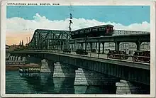 The current bridge was built in 1900 under chief engineer William Jackson, and was designed to carry the Charlestown Elevated railway in addition to vehicle traffic. However, the railway was demolished in 1975 to make way for its replacement, the MBTA Orange Line's Haymarket North Extension. The new line was rerouted to avoid having to pass directly through the densely populated Charlestown neighborhood. The Haymarket Tunnel, emerging from under both North Station and the Charles River just south of the new Orange Line Community College station, was inaugurated in 1975 as the designated tunnel for Orange Line trains.[6] Because the bridge was originally designed to accommodate an elevated railroad in addition to automobiles, the bridge spans six lanes.