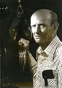 Charles Russell Dunn (c. 1898 – September 23, 1993)[1] was an American bootmaker of handmade Western, or cowboy boots for more than 80 years. Dubbed the "Michelangelo of cowboy boots,"[2] he first gained widespread notice in the wake of Jerry Jeff Walker's song "Charlie Dunn" (1972). By the time he retired in 1988 from Texas Traditions, his shop in Austin, he routinely charged up to $3,000 for a pair of boots, had a waiting list of hundreds of interested buyers willing to wait three years for delivery, and had made boots for a long list of celebrities, including Arnold Palmer, Mary Kay Place, Gene Autry, Slim Pickens, Don F Brooks, Harry Belafonte, Ernest Tubb, Peter Fonda, and Carole King.[3]