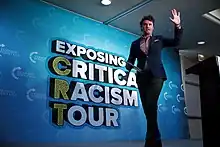 Kirk has said that the concept of white privilege is a myth and a "racist lie".[50][51][52] Kirk served on President Donald Trump's 1776 Commission, a response to the 1619 Project."[53] During a September 2021 episode of The Charlie Kirk Show, he called for Texas to create a "citizen force" and have them deport Haitians.[54] Assuming "more hard-right positions", he said that Democratic immigration policies were aimed at "diminishing and decreasing white demographics in America".[32][54] In October 2021, Kirk began the "Exposing Critical Racism Tour" of a number of campuses and off-campus venues to "fight racist theories on America's college campuses!!"[55][56] On the Minnesota leg of the tour on October 5, 2021, Kirk called George Floyd a "scumbag" and appeared to refer to the January 6 riot at the U.S. Capitol when he said that "if you dare walk into the U.S. Capitol building and take a selfie, they'll put you in solitary confinement."[57]