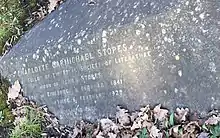 Charlotte Stopes died on 6 February 1929 in Worthing, Sussex at the age of 89, from bronchitis and cerebral thrombosis, and was buried at Highgate Cemetery. The date of birth on her grave is 6 February 1841.[1]