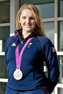 - ↑ "Bronze medalist Charlotte Henshaw of Great Britain celebrates on the".