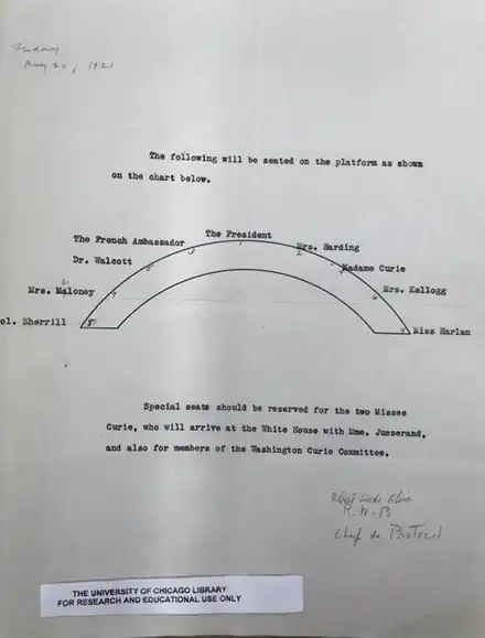 - ↑ "MME. CURIE AT WHITE HOUSE; Hoover Will Speak When Radium Is Presented to Her Tonight". The New York Times. 1929-10-30. ISSN 0362-4331. Retrieved 2017-05-04.