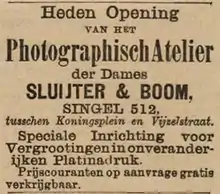 In June 1896 she opened a photography studio with her colleague Anna Sluijter. They called their studio Dames Sluijter & Boom and it is considered one of the first woman-owned photography studios in Amsterdam.[6][7]