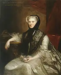 Lady Charlotte was a daughter of Daniel Finch, 7th Earl of Winchilsea and 2nd Earl of Nottingham, by his second wife, the former Anne Hatton. She married the Duke of Somerset on 4 February 1726, and the marriage was not a happy one. He was known as "The Proud Duke",[3] and is said to have reproached her, after she had gently tapped him on the shoulder with her fan, with the words: "Madam, my first wife was a Percy and she never took such a liberty".[4] The duke had for some years been corresponding with Sarah Churchill, Duchess of Marlborough, now widowed, and continued to write to her after remarrying.[3]