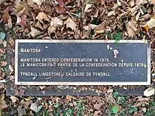 The park was the idea of Dr. Eric Harvie, chairman of the Fathers of Confederation Memorial Citizens Foundation, and includes boulders from each of the Canadian provinces; each boulder includes a plaque that identifies the provinces from which the boulder came, along with the geological name of the rock formation. Harvie intended the park to commemorate the contribution of people from across Canada to the creation of the Confederation Centre of the Arts.[2][3]