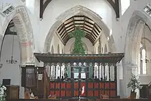 Garlanded rood on 16th-century screen in St Mary the Virgin parish church