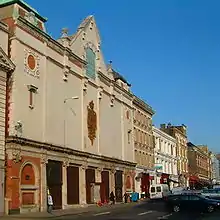 The 19th century Grade II listed Smithfield Market, designed by Victorian architect Sir Horace Jones, is the dominant architectural feature of the area.[8] The market, along with Billingsgate Fish Market and New Spitalfields Market are expected to move to a new consolidated site in Dagenham Dock.[9] The Museum of London plans to move into the General Market Building on Smithfield when possible,[10] vacating its nearby Barbican site in December 2022.[11]
