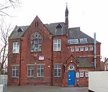 The nearby Charterhouse School to the east of the present Charterhouse is a Victorian development – a board school designed by William Botterill, built in 1881. The school consists of a single-storey infants' school, and a two-storey segregated school, with separate boys' and girls' entrances; the girls' classrooms were on the first floor. It became a secondary school in 1950.[18]