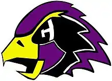 The school mascot is the "Hawk," with the school colors being purple and gold.