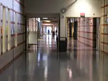 Each house has two stories and similar design. They are connected by one large hallway. This main hallway is a little less than one quarter mile long. There is also a South Wing of the high school, south of the main hallway, which holds the cafeteria and connects to the activities section of the school. Starting in 2012, the Green House was converted into the Family Learning Center, a pre-school setting.[9] As of 2017, the Green House returned to a normal high school setting, holding mostly freshmen.