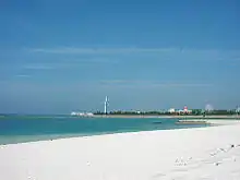 Much of the Hamby area is home to the "Hamby Free Zone". Though the name is misleading due to romanization errors, it is a large flea market that is scattered over an area of several blocks, though much of the land it is on is constantly relocated or bought for expansion of businesses. With the expansion of shopping/recreational businesses in the Mihama area, Chatan has become one of the most popular destinations for recreation. It is home to a large ferris wheel (which has become a sort of landmark), a small convention center, several shopping plazas, arcades, karaoke parlors, a 25-story hotel named "The Beach Tower" and several beaches. Sunabe is famous for a large sea wall which attracts many SCUBA divers and surfers.