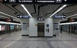 Chedaogou station (simplified Chinese: 车道沟站; traditional Chinese: 車道溝站; pinyin: Chēdàogōu Zhàn) is a station on Line 10 of the Beijing Subway.[1][2] This station opened on December 30, 2012.[3]