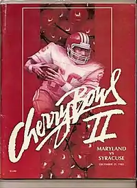 The 1985 Cherry Bowl was the second and last to be played, this one contested by #20 Maryland and Syracuse. The scoring opened in the 1st with a 26-yard Syracuse field goal. Maryland countered with a 4-yard touchdown run, making it 6–3. A 10-yard run in the 2nd gave Syracuse a 10–6 lead; however, the Terrapins would overpower Syracuse, scoring 29 consecutive points, and Syracuse was unable to rally in a 35–18 Maryland victory.
