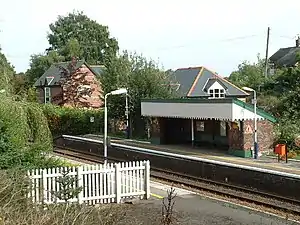 - Knutsford, original station opened at end of the first stage of construction when the line reached Knutsford. The first station closed and was replaced by a second station when the line was extended to Northwich on 1 January 1863.[8]