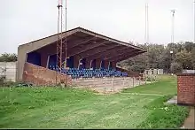 In the 2002–03 season, the section of terracing south of the main stand was covered and named in honour of defender Kurtis Townsend, son of then manager Troy Townsend, who had died whilst travelling to an away game the previous season[10] and seats originally from the East Stand at Stamford Bridge were installed on the covered terrace. The main stand, the Kurtis Townsend stand and the floodlights were all replaced in the summer of 2015. In 2023 a new main stand seating 250 was built on the halfway line, while two 700-capacity terraces were installed behind each goal.[1]