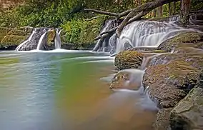 Namtok Chet Sao Noi or Chet Sao Noi waterfall (literally: "seven little girls waterfall") is a small and beautiful waterfall. The waterfall flows along a stream and has seven tiers (hence the name seven little girls), but there are many different stories about the waterfall names.[2] The height of each tier is approx four m (13 ft), with spacious, shaded swimming areas available underneath.[3]