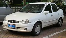 On 12 December 2000, the first Chinese-made Buick rolled off the production line as part of trial production. Series production commenced in June 2001.[8] This car was the first compact car produced by the SAIC-GM joint-venture, and was aimed squarely at young families. The Buick Sail was based on the Opel Corsa B, and the body design is shared with the Brazilian Chevrolet Corsa Classic and India's Opel Corsa Joy. This four-door saloon bodywork was never offered in Europe, instead being intended for developing markets. The only engine choice is a 1.6-litre, 92 PS (68 kW) inline-four engine, coupled to a five-speed manual transmission.[9] The price was under 100,000 RMB. The car went on sale in June 2001. The original Opel Corsa B had also been "assembled" in Guangdong province as the Jilin Jiangbei Meilu JJ7090 from 1993 to 1996. Around 2000 cars were imported nearly complete to fit certain legal loopholes which existed at the time and sold with Jilin Jiangbei badging.[10]