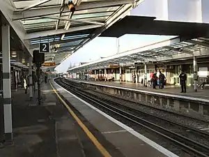 - ↑ Yonge, John (November 2008) [1994]. Jacobs, Gerald (ed.). Railway Track Diagrams 5: Southern & TfL (3rd ed.). Bradford on Avon: Trackmaps. map 20D. ISBN 978-0-9549866-4-3.