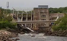| 1957 | ![]() | S.P.C / Elkem Métal Canada | Elkem Metal Canada Inc. | 38.0 MW (51,000 hp) | The Société de Pulpe de Chicoutimi / Elkem Métal Canada generating station, commissioned in 1957 on the grounds of the former Pulperie, was the last generating station to date installed on the Chicoutimi River. Located mainly underground, the factory diverts the Chicoutimi river to draw 38.0 MW (51,000 hp) which mainly benefit the Elkem Métal factory in Chicoutimi[13] |