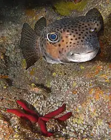 Chilomycterus reticulatus, the spotfin burrfish, spotted burrfish, Pacific burrfish, spotfin porcupinefish or few-spined porcupinefish, is a species of fish in the genus Chilomycterus, which is part of the porcupinefish family Diodontidae.[3]