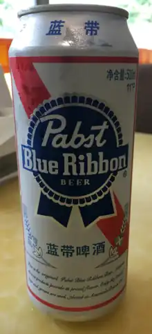 ![]() Pabst Blue Ribbon Beer as sold in the PRC in 2017. | |