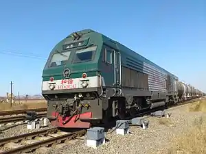 The China Railway HXN3 (EMD classification JT56ACe) is a 6000 horsepower (4.5 MW) diesel-electric locomotive designed by Electro-Motive Diesel in the United States for export to China. All JT56ACe locomotives use AC traction motor technology and use the EMD H-Engine as their prime mover. The locomotives are capable of meeting the EPA's Tier 2 emissions regulations.[1]