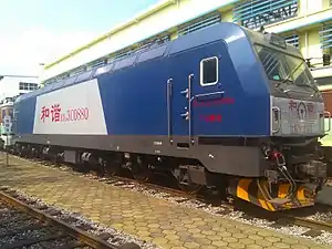 HXD3C (Chinese:和谐3C型电力机车) is an electric locomotive built in Mainland China by CNR Dalian Locomotives. It is also the first 6-axle dual-service AC electric locomotive in China. It has functions of DC600V train power supply (except HXD3CA) and dual pipe air supply.[3]