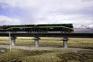 NJ2 is a class of diesel-electric locomotives employed by China Railway. Built in Erie, Pennsylvania, it is based on a standard GE Transportation Systems GE Dash 9-44CW and marketed as GE C38AChe. It was specially customised for high altitude operation on the Qinghai-Tibet Railway route. It is used on the Qingzang Railway that connects Xining, Qinghai Province, to Lhasa, Tibet Autonomous Region, in the People's Republic of China. It is a 3,800 kW (5,100 hp) Co-Co design (Railway Magazine Dec 2006 p36).