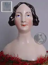 Parian dolls are similar to china dolls in that their heads are made of white untinted porcelain, but they are unglazed with a matte finish and typically have blonde hair.[10] They are found on similar body types. They were also mainly made in Germany, from around the 1860s to 1890s.[11]