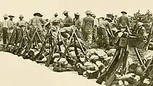 The number of Chinese nationals who died in the war is unknown, and estimations are controversial. European records put the number at only 2,000, while Chinese scholars estimate the number to be as high as 20,000.[20] While most died of the Spanish flu epidemic of 1918, there were also victims of shelling, landmines, and poor treatment. Their remains are interred in dozens of European graveyards. The cemetery at Noyelles-sur-Mer, for example, contains 838 Chinese gravestones.[13]