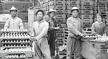 The Chinese Labour Corps comprised Chinese men who came mostly from Shandong,[12] and to a lesser extent from Liaoning, Jilin, Jiangsu, Hubei, Hunan, Anhui and Gansu provinces.[11] Most travelled to Europe via the Pacific and by Canada.[1] The tens of thousands of volunteers were driven by the poverty of the region and China's political uncertainties, and also lured by the generosity of the wages offered by the British. Each volunteer received an embarkment fee of 20 yuan, followed by 10 yuan a month to be paid over to his family in China.[2]