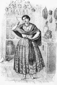 "La china" woman, in a lithograph that accompanied the heading of the same name in the book Los mexicanos pintados por sí mismos about Mexican culture.