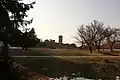 The Chindia Tower (Romanian: Turnul Chindiei) is a tower in the Curtea Domnească monuments ensemble in Târgoviște, Romania, built in the 15th century. The tower was begun during the second reign of Prince Vlad III the Impaler over Wallachia and took its final form during the 19th century. It initially had a military purpose, but during its history, it has been used as a guard point, a fire spotter, and for storing and protecting the state treasury.[1] Between 1847 and 1851, the Chindia Tower was completely restored by Gheorghe Bibescu who added 5 metres (16 ft) to its height. The building in its current form has a height of 27 metres (89 ft) and a diameter of 9 metres (30 ft).