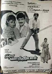 Chinna Vathiyar (transl. Young Teacher) is a 1995 Indian Tamil-language science fiction comedy film, directed by Singeetam Srinivasa Rao. The film stars Prabhu in a dual role, Khushbu, Ranjitha, Goundamani, Senthil and Nizhalgal Ravi. Music was by Ilaiyaraaja and lyrics were by Vaali. The comedy subplot was inspired by Crazy Mohan's play Madhu +2. The film was successful at the box office.[2]