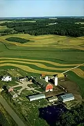 Parts of northern Chippewa county are covered with choppy hills dimpled by kettle lakes and bogs—the terminal moraine left by the last glacier.[8] The Ice Age Trail threads through some of this country, providing public foot-access to these unusual landforms.[9]