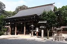 It was formerly a National Shrine of the Third (lowest) Rank (国幣小社, Kokuhei Chūsha) in the Modern system of ranked Shinto Shrines.