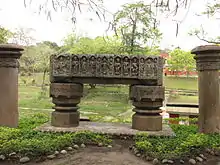 Ancient Stone pillars in chitra lekha udyan showing various deities