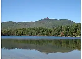 Visible to the north of the lake is the view of the bald summit of Mount Chocorua, which tops out at an elevation above 3,480 feet (1,060 m).[10]