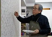 After his studies at Hongik University, he beame a member of two historial Korean art groups in the 1960s, "Origin" and "AG". During this time, he produced logically ordered works in a geometric/harmonic style, and began to consider the notion of "non-substantiality". His work became more experimental an minimal as he explored the nature of "non-painting" in his work. In 1968, he received an award of recognition from the 5th Korean Art Awards. He often uses a monochromatic palette, usually in white, yellow, black or blue. The paint is applied to the canvas using his fingers, brushe and rollers; while his drawings are made with an awl tool on paper. His work is considered meditative.[1] During the 1970s he became associated with the Dansaekhwa movement of Korean monochrome painters. Culturally, Dansaekhwa represents a break with Korea's cultural past and embraces Western modernist movements.[2]