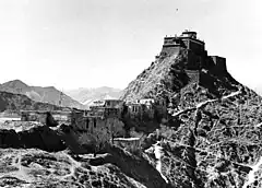 1938 photo of Men-Tsee-Khang on top of Chagpori, taken from the "Western Gate" or Pargo Kaling. It was completely destroyed during the March 10th, 1959 uprising.