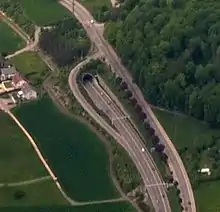 South portal with A4 exit Flurlingen, aerial view (2010)